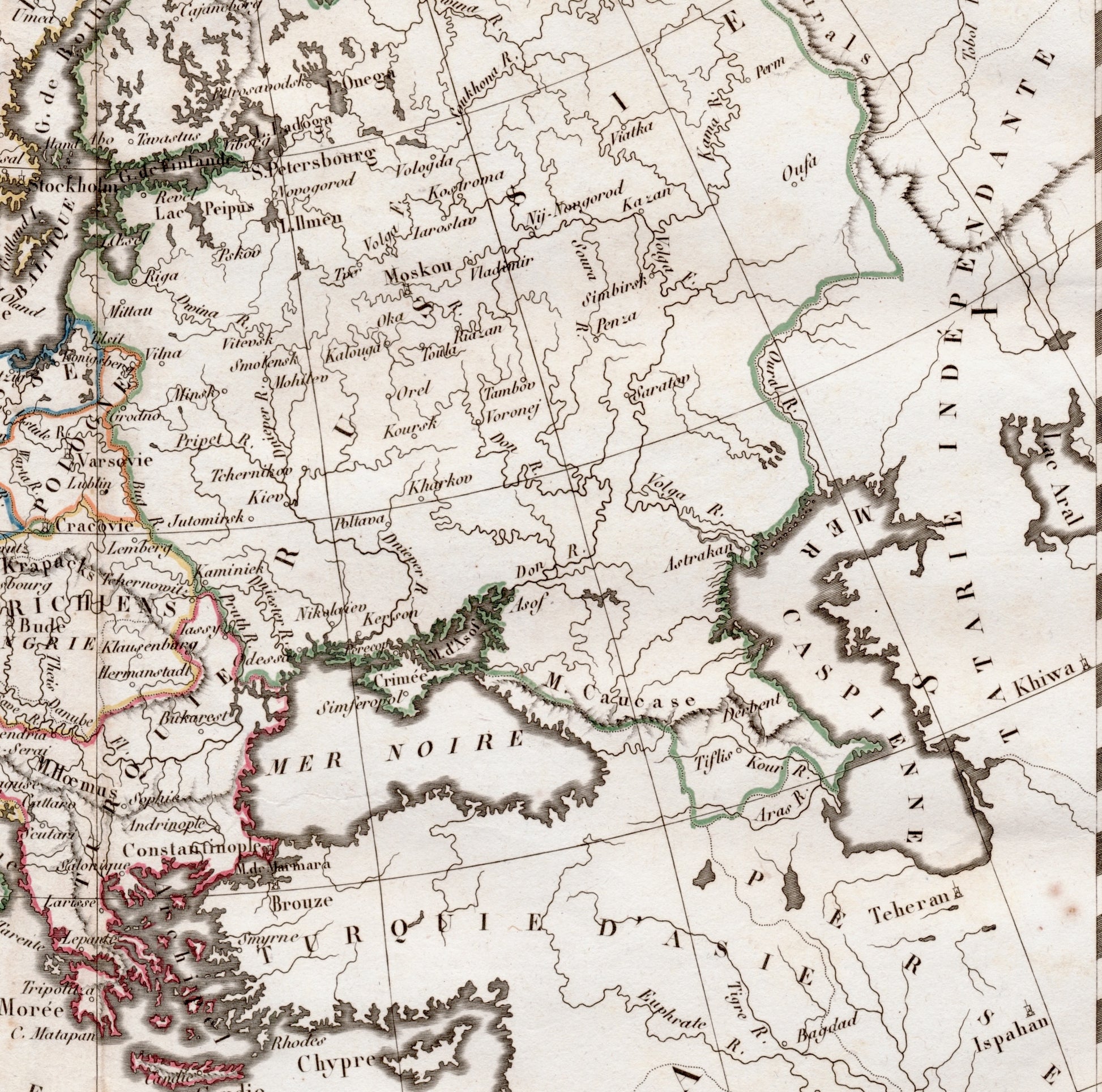 The map is from the Nouvel Atlas Portatif, first published in 1762 by Didier Robert de Vaugondy, who was appointed geographer of King Louis XV in 1760 and who intended the atlas to be used to educate young students in the basic elements of geography. The atlas, including the 1804 edition from which this map was taken, was later published by Charles François Delamarche, a Parisian geographer and publisher who bought the copper plates of Robert de Vaugondy and reissued the atlas.